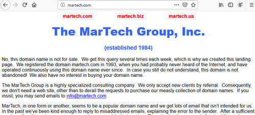 La empresa que posee el dominio MarTech.com parece estar recibiendo un montón de peticiones de compra del dominio. Tantas que han puesto en la web este mensaje:
