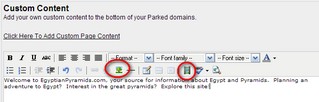 Agregar contenido es fácil. Cuando se edita un dominio hay un botón de "custom content". Los botones marcados con un círculo rojo son para añadir imagen y video, respectivamente: