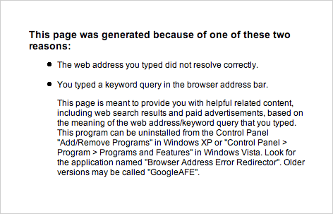 Sin embargo, en esta demanda, Dell también podría muy bien sentarse en el banquillo de los acusados. Dell también roba tráfico con dominios typo. Google y Dell llegaron a un acuerdo hace un año para preinstalar la Google Toolbar en los nuevos ordenadores Dell. Google compartiría los resultados publicitarios procedentes de esas instalaciones con Dell. Un segundo programa intercepta los dominios typo y redirige al usuario a una página con publicidad que incluye links relevantes: