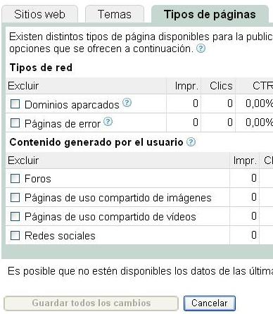 1) Desde Marzo de este año, Google AdWords implementó la funcionalidad Exclusión de sitios y categorías, que permite a los anunciantes impedir que los anuncios se publiquen en dominios en parking. Además, se da la posibilidad de eliminar sus anuncios de: foros, páginas de uso compartido de imágenes, páginas de uso compartido de vídeos, redes sociales y páginas de error.