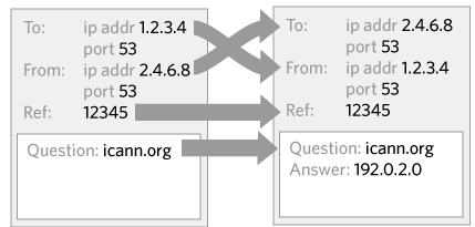 Sin embargo hay dos parámetros que hay que adivinar. Uno es el servidor del cual procede la pregunta. Cada dominio tiene una media de dos o tres posibles servidores, con lo que la probabilidad de acertar es de 1/3.