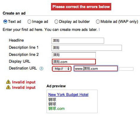 Aaron Krawitz de IDNBlog al utilizar Google Adwords para promocionar algunos de los dominios IDN que pensaba desarrollar se ha dado cuenta de que Google sólo te permite introducir en la url que se va a mostrar en el anuncio un código Punycode. Por ejemplo, para bücher.eu (en alemán libros) habría que escribir xn--bcher-kva.eu.