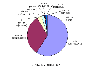 Y es que la lista negra sólo la habían publicado en Chino. Por otra parte, los dominios .cn arrasan. Si en mayo de 2007 había registrados 5.303.115 , un mes más tarde ya hay registrados 6.149.851: