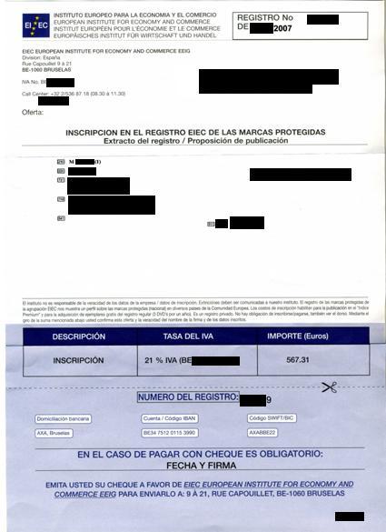 Normalmente, por estas fechas se suelen enviar las cartas a los Reyes Magos, Santa Claus o Papá Noel. Sin embargo el Instituto Europeo de Economía y Comercio manda miles de cartas durante todo el año solicitando 567,31€ a los receptores de la carta por publicar su marca registrada en un Indice Premium privado y recibir un máximo de 3 DVDs al año con dicho registro. Es el mismo tipo de estafa que la que se hace usando los datos del whois.