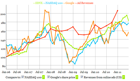 Los precios de dominios no se separan de la economía "real". De hecho, fluctúan de una manera muy similar a la del índice del Nasdaq 100, del precio de las acciones del gigante de Internet Google, o los ingresos totales del marketing online en los EE.UU. La correlación entre el mercado de dominios y otros indicadores económicos es obvia y muestra que los compradores de nombres de dominio y vendedores toman decisiones de precios por motivos económicos.