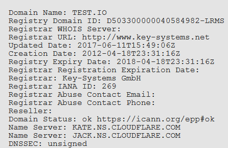 Sin embargo a partir del 10 de Junio el whois mostraba y muestra hoy esta información incompleta: