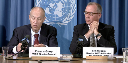 El Director General de la WIPO Francis Gurry junto con Erik Wilbers (en la foto) dieron cuenta durante una conferencia de prensa en las Naciones Unidas de Ginebra de los casos de 2015.