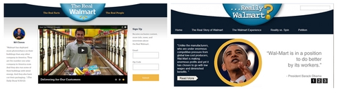 Los dominios apuntaban a una web de crítica a Walmart parodiando su web therealwalmart.com que incluía videos, testimonios, blog, etc,… y un aviso legal abajo del todo que decía que esta web parodiaba la real, que no estaba afiliada a Walmart y que usaba estilos similares: