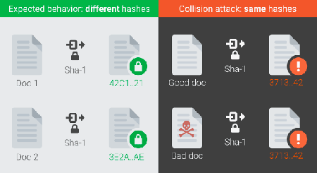 Después de 10 años de la introducción del algoritmo SHA-1 se ha descubierto una técnica para generar colisiones, tras dos años de investigación conjunta. Google advierte a la comunidad técnica de la necesidad de poner una fecha para dejar de utilizar SHA-1, particularmente en la firma de certificados digitales. SHA-1 ya no es seguro.
