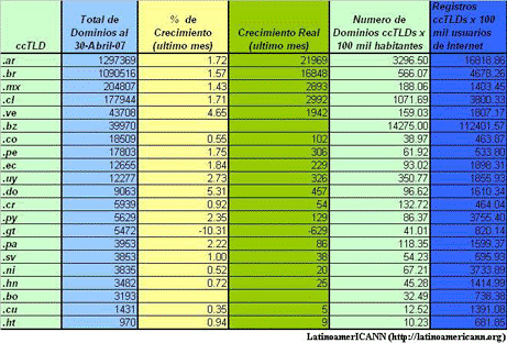 Latinoamericann publicaba este fin de semana la situación de los nombres de dominio en América Latina durante el mes de Abril.