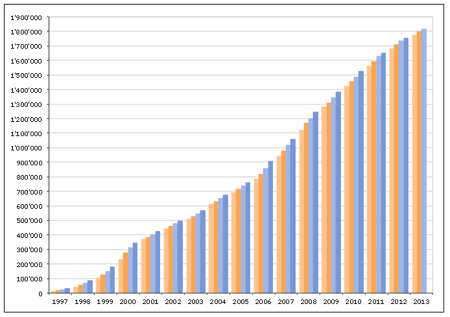A 30 de Septiembre de 2013 había 1.816.048 dominios .ch registrados, con un crecimiento respecto al año anterior de 81.878 dominios
